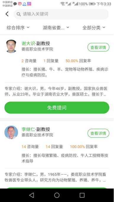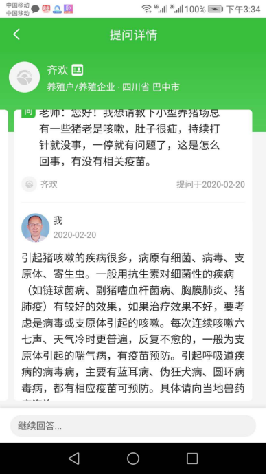李继仁与谢大识老师在惠农网上为养殖户提供免费技术咨询