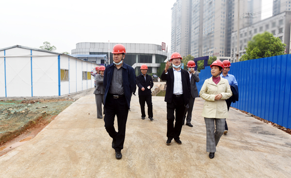 李文莲、朱忠义一行先到施工现场仔细察看,检查施工材料、施工进度、现场安全管理情况,并就发现的情况与施工方、监理方负责人进行交流,制订工作方案。