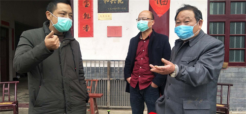 向卫煌同志(左一)走村串户督查防疫消毒工作