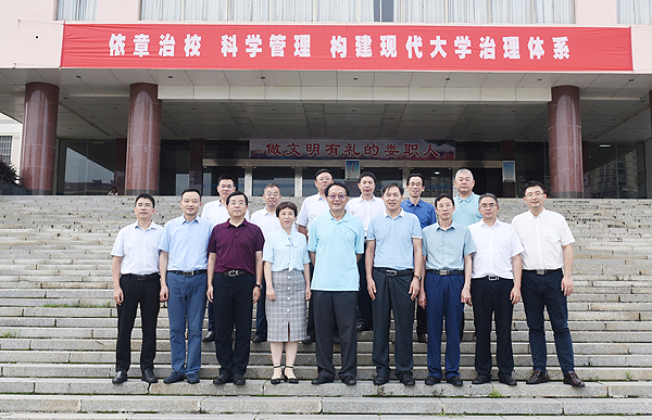 反馈会后,我校领导与督导组专家在主教学楼前合影。(刘艳)