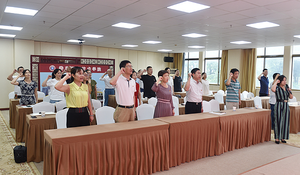 党政办党支部书记欧芳带领全体与会人员重温了入党誓词。