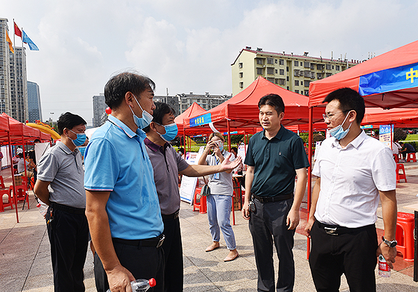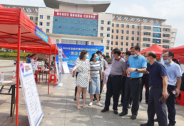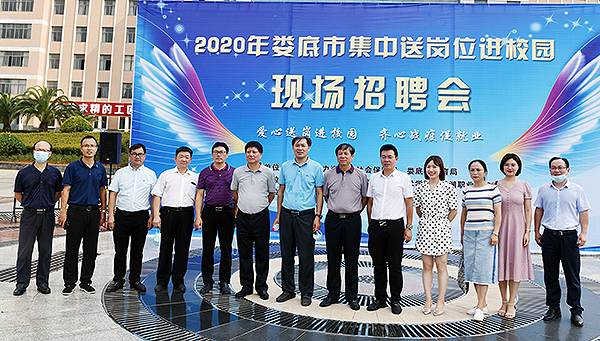娄底市人力资源和社会保障局党组书记、局长刘小龙,党组成员、副局长申战锋,党组成员、副局长陈轶强一行到会指导,与校长朱忠义、副校长周志和等一起巡视了招聘现场,询问企业用工需求,了解参会毕业生就业意愿。今年设置了2020年娄底市直部分事业单位公开招聘人员岗位计划及要求信息,招聘人力资源、文秘、管理、工程技术等岗位。领导们充分肯定了此项举措。