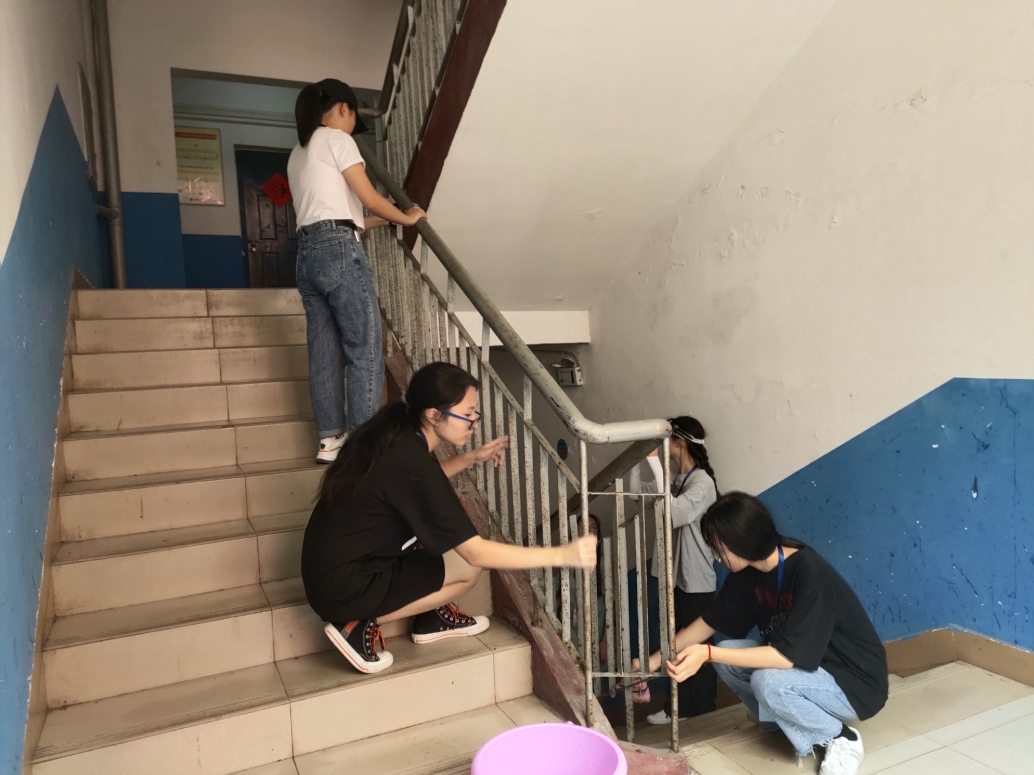 活动中,各位预备党员、入党积极分子、学生会干部和青年志愿者始终牢记党训,发扬不怕脏、不怕累的工作精神,积极认真地为宿舍的洁净尽自己最大一份力量。在明确分配区域后,大家显示出了饱满的热情和积极的状态,不仅对地面进行了细致清扫,而且对洗手池、平时卫生清扫过程中遗留下的死角,宿舍门窗、楼道、墙面等进行了彻底的清理。大家积极参与,保质高效地完成任务。活动最后,小组长们检查了宿舍楼的各个角落,还回打扫工具,大家虽然干得大汗淋漓,却一个个笑容满面,激情满满,充分展现了时代新青年的模范带头作用。