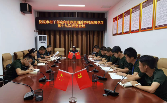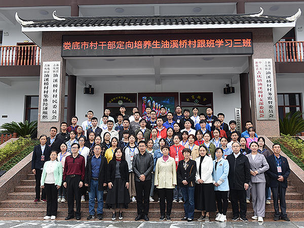 为切实加强村干部源头建设和带头人队伍建设,打造一支懂农业、爱农村、爱农民的专业化、年轻化村干部队伍,娄底职业技术学院在娄底市委组织部指导、支持下,实施村干部免费定向培养工程。2019年,娄底职业技术学院共录取村干部定向培养生185名(简称“村官班”)。为培养好这批学生,娄底市委组织部牵头组织学生寒暑假期间到本区各地见习、实习。2020年8月,村干部定向培养生分批来到湖南省新化县油溪桥村(全国十大乡村振兴示范村、全国文明村、全国百强特色村庄),开展为期半个月或一个月的跟班学习和挂职锻炼。在这里,他们分三个模块进行跟班学习:第一个模块是乡村治理实操,包括积分制管理的统计与评定、村规民约的修订与操作、星级农户先进院组的检查与评比、风险防控四步调解法等,通过入户走访、调研、交流座谈、专题讲座等方式进行;第二个模块是产业建设实操,包括基础产业建设的开发与实施、旅游开发的配套与服务、种植产业的开发与培育、养殖产业的管护与销售等,通过参观调研村里的奈李基地、枇杷园、桃树林、甲鱼养殖基地、养牛合作社、稻田养鱼基地等合作社,以及茶楼、漂流公司、宾馆、民宿等产业进行学习;第三个模块是管理运行见习,包括开展党日活动、美丽乡村建设、乡风文明·家风家训礼仪培训等专题讲座进行巩固,开办丰富的文体活动等,参观油溪桥的历史文化长廊、红色教育展览馆。
