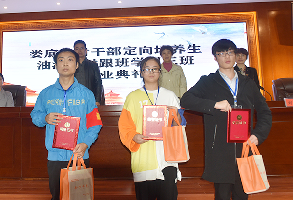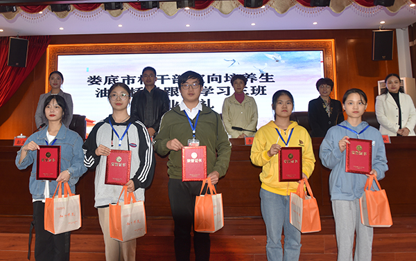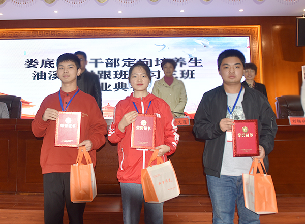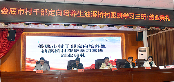 “我们在这里学习了乡村治理、产业建设和基层党组织建设的先进理念与实践经验,收获很大。”2020年9月23日,在湖南省新化县油溪桥村三楼会议室,娄底职业技术学院2019级村干部定向培养生肖亮感言道。她刚在这里被评为油溪桥跟班实习三组优秀班干部,接受了娄底职院党委书记李文莲、油溪桥村村党支部书记彭育晚等的表彰。此次共有5位优秀学员、3位优秀组长、3位优秀班干部获奖。油溪桥村党员干部培训中心主任彭正梅、娄底职院农林工程学院院长刘梅秋、党总支书记王冬青参加结业典礼。