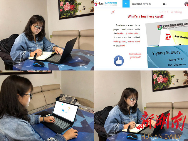 赵熹妮老师在家里进行远程教学