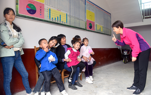 李文莲与儿童亲切交谈