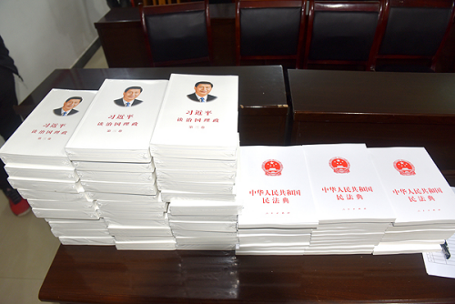 为进一步提高农村党员理论素养,推进法治建设,李文莲带领娄底职院组织部部长吴文贵、驻村帮扶工作队一起,为建新村支部每名党员送上了《习近平治国理政》第三卷和《中华人民共和国民法典》等学习书籍,并为建新村全体党员上了一堂生动的主题教育党课。