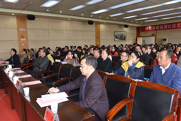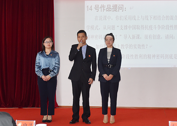 本届大赛分为二级学院(教学部)初赛与学校决赛两个阶段,于9月底前完成了全部初赛。决赛设课程思政说课、思政课说课、思政课课外活动设计三项比赛内容,现场说课(阐述)和答辩两个环节进行。入围校级决赛的15个团队来自11个二级学院和2个教学部,他们在今天的比赛中结合多媒体设备等多种现代化教学手段与精彩讲授相结合,对如何将思政元素有效融入课程教学,让课程思政与思政课程有趣、有效、有创新展开精彩讲授,教学思路清晰,层次分明,深入浅出。在现场答辩环节,选手们面对提问,落落大方,妙语连珠,显示了我校教师开展思政教育教学的先进理念、丰富经验、特色创新和不凡风采,现场不时响起阵阵热烈掌声。