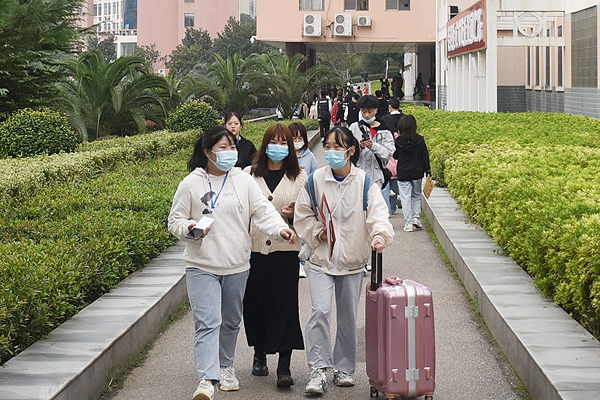 为使迎新工作顺利进行,从8日晚上开始,我校全体迎新人员已经各就各位,招生、学工、后勤等部门的工作则早从暑期录取时便已开始。在9日-10日报到期间,我校在主教学楼、医学院科教群楼设集中迎新报到点,高铁站、火车站、汽车站设立新生接待点,报到现场各二级学院还安排了班级辅导员及专业负责人值班,解答学生和家长提出的各种问题;学校为新生开通了生源地助学贷款的绿色通道,方便家庭经济困难的学生顺利入学,并为特别贫困家庭准备了被褥等免费用品。保卫处在校门口测量体温,在迎新现场设立多处值勤点、引导车辆进出,积极巡查,保障新生及家长的人身和财产安全,全体工作人员满腔热情地投入迎新工作,各个环节高效、畅通。
