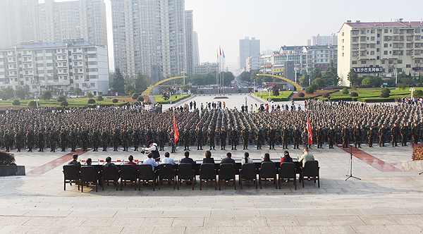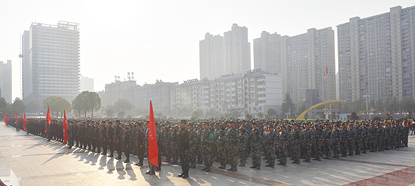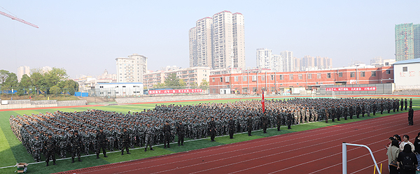 10月11日上午,我校2020级大专新生军训动员大会分别在校本部和医学院校区举行。校武装部部长、副校长周志和,党委委员梁凌洁,校武装保卫处处长、军训团团长张明,学工处处长李规,团委书记刘媛,校本部军训总教官吴志良,医学院军训总教官颜星敏以及各二级学院负责人出席大会并在主席台就座。我校5500余名新生与辅导员、军训教官参加大会。