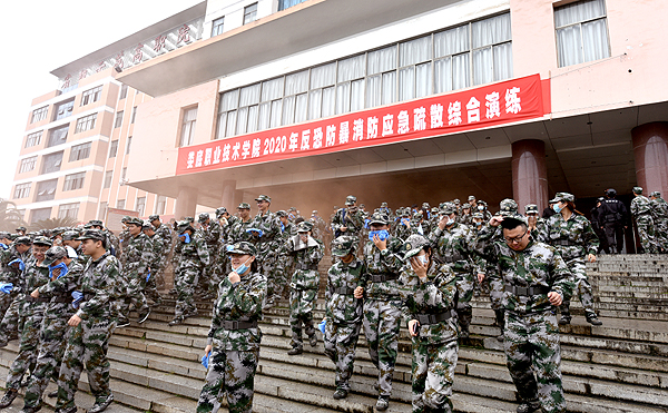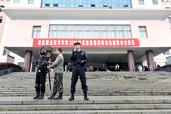 为进一步加强反恐防暴消防应急处置工作,提高学校有效防范和应对突发事件能力,近日,我校举行反恐防暴消防应急疏散综合演练,学工处、保卫处、德威安保公司等相关部门工作人员、各二级学院辅导员及校本部3600多名2020级新生参加。