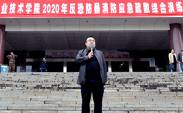 学校保卫处副处长伍琳在动员讲话中指出,“安全工作无小事”,学校安全事关社会稳定,事关每个家庭的幸福、安宁,是学校各项事业发展的前提和基础。他希望广大同学珍惜此次学习观摩的机会,以积极、严肃、认真的态度参加演练,了解、学习消防知识,锤炼和提高面对暴力恐怖、火灾等突发事件的应对能力。