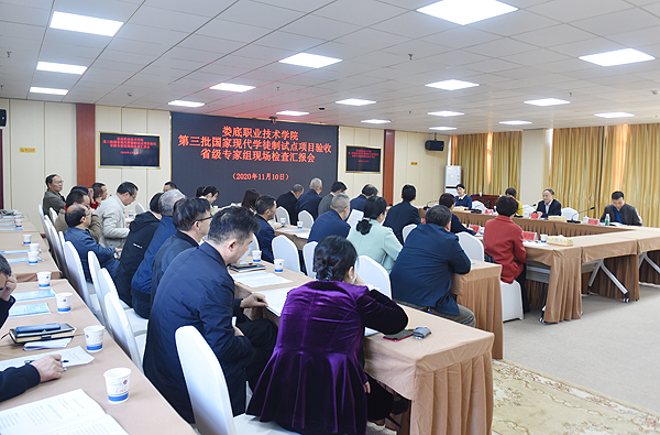 现代学徒制试点项目负责人李继仁就项目试点完成情况、主要做法与成效、存在问题及下阶段计划作了汇报。我校畜牧兽医专业自2018年立项第三批国家现代学徒制试点项目以来,学校在组织机构、制度政策、过程管理、经费保障等多方面都开展了行之有效的工作,在2018、2019级畜牧兽医专业中分别组建了现代学徒制试点班,校企共同构建双主体协同育人机制与“一融五会三协议”招生招工一体化运行机制,校企共同开发教学标准体系共建共享教学资源,创新了“小学期分段育人、真实岗循环进阶”的人才培养模式,制定了现代学徒制试点专业双导师管理办法。2019年,校企联合对43名学徒进行的初级、进阶岗位技能考核合格率为100%、优秀率为28%。据第三方评定机构麦可思出具的《娄底职业技术学院现代学徒制教学质量评估报告》表明,畜牧兽医专业现代学徒制试点任务完成情况好,企业、学生等各方满意度高。