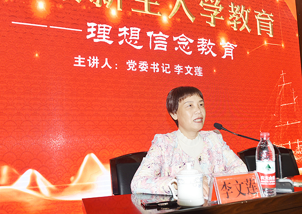 本网讯 11月5日,娄底职院党委书记李文莲为2020级大专新生主讲的开学第一课如约而至。这场已经坚持了八年的“课程”每年都会焕发出新的光彩和活力,指引着娄职学子在大学的海洋里迎风遨游,追逐梦想。校党委副书记王健龙、相关处室负责人、学工系统工作人员、思政课教师参加大会,2020级农林学院全体新生、辅导员聆听授课。大会由王健龙主持。