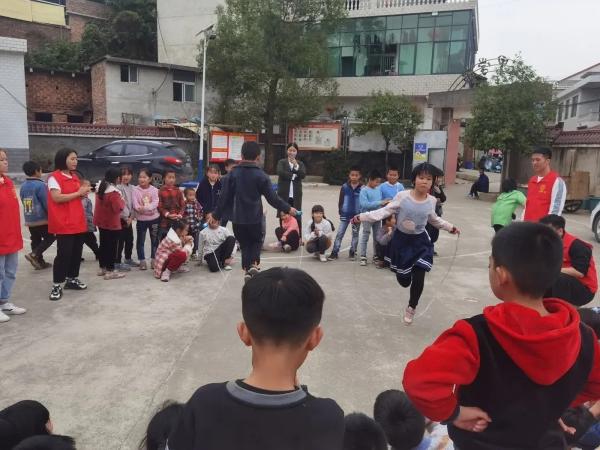 第四项:由队员们带领孩子们进入了跳绳友谊比拼,培养孩子们的默契,现场一片欢声笑语,活动增强了孩子们锻炼身体、劳逸结合的意识,进一步增强了孩子们与队员之间的情感交流,进一步增强了大家的凝聚力和向心力。
