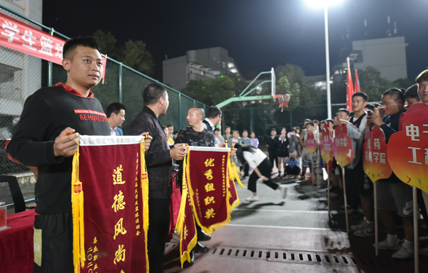 11月18日晚上,历时八天的我校第十九届大学生篮球运动会在校本部篮球场正式落下帷幕。党委委员、副校长周志和,学生工作处处长李规,团委书记刘媛,学生工作处副处长肖靓,裁判长王国平出席本次闭幕式,各二级学院学工副院长、学工干事、全体运动员、教练员、裁判员和学生代表参加闭幕式。