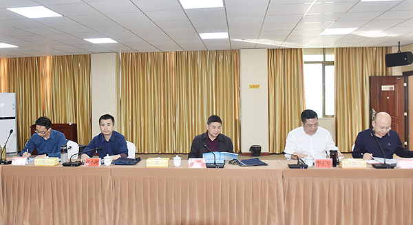考察汇报会在综合楼二楼会议室召开。全体在家校领导、相关部门主要负责人、二级学院总支书记与会。党委委员、副校长龙伟主持汇报会,党委副书记王健龙汇报学校文明高校创建情况。