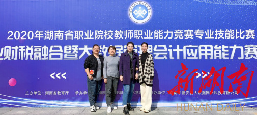 丁祎老师(右一)获业财税融合暨大数据管理会计应用能力赛项一等奖