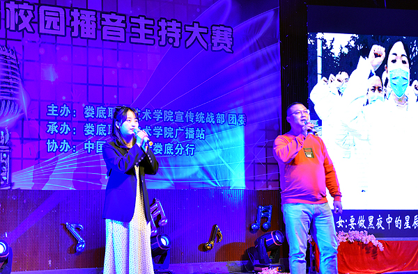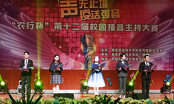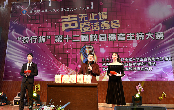 12月22日晚,我校在学术报告厅举行“声无止境 疫话强音”“农行杯”第十二届校园播音主持大赛总决赛。本次大赛由我校宣传统战部、团委主办,校广播站承办,中国农业银行娄底分行协办。我校宣传统战部部长王宗凡,中国农业银行娄星支行党委委员、副行长曹雄出席。我校团委书记刘媛,组织部副部长张波,宣传统战部老师李莉、刘艳,党政办老师曾莉担任大赛评委。此次大赛由校广播站谢鸿、李雨萱、曾禹、何娅娜主持。