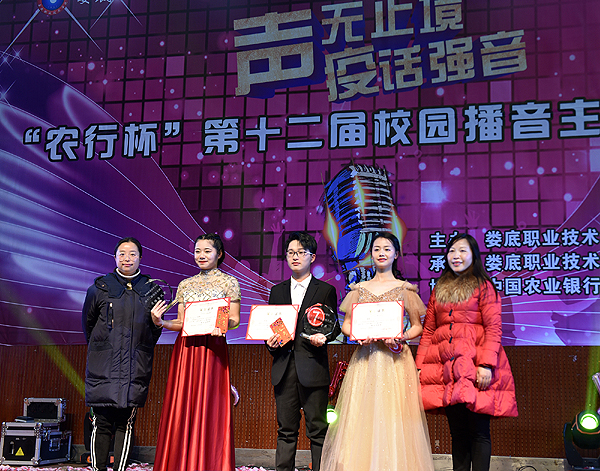 经过评委们的专业评审,最终6号选手郭梦阳获得金话筒奖、4号选手刘梦雨获得银话筒奖、7号选手黄凯获得铜话筒奖,彭书姿等8位选手获得优胜奖。此外,3号选手秦海英通过网络投票赢得了“最具人气奖”,2号选手唐诗怡获得“最佳台风奖”,6号选手郭梦阳获得“最佳才艺奖”,7号选手黄凯获得“最佳口才奖”。出席大赛的嘉宾和评委为选手颁奖并合影留念。(赵炜 李湘 刘妍 罗嘉琪 赵亚芳 张汀梅 吴翔)