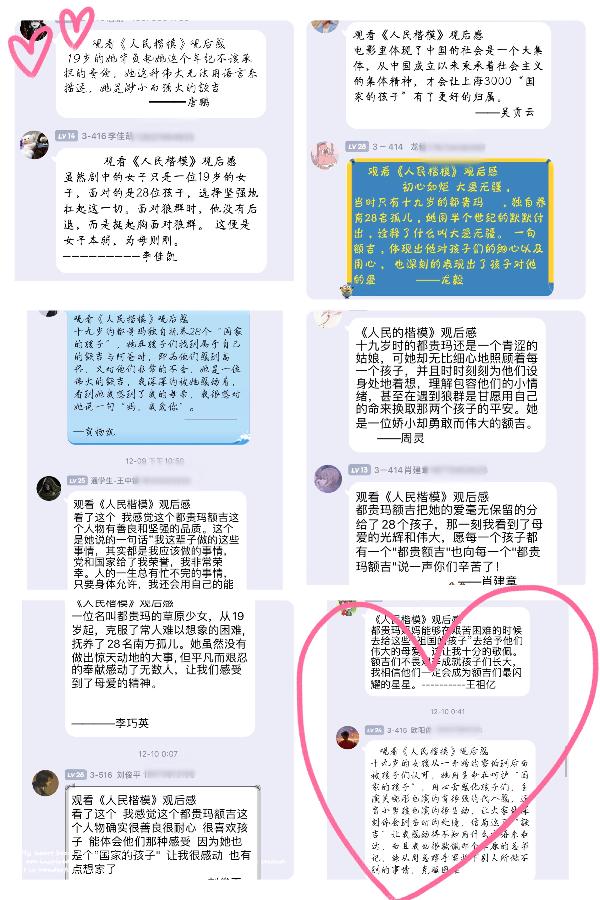 活动伊始,辅导员刘利辉就当下班级现状与同学进行深入交流;随后在老师的带领下,同学们一起认真观看了《故事里的中国之人民楷模》,观看过程中同学们全情投入,到动情处不自觉流下了感动的泪水。视频结束后,同学们感触良多,纷纷分享了自己的观后感受,学子龙志平表示一个十九岁的姑娘,在自己最美好的年华里做了最伟大的事。她说如果照顾和爱自己的孩子叫做责任,那照顾和爱不是自己的孩子那就叫做“神”。她为这种大爱无疆的精神而感动。