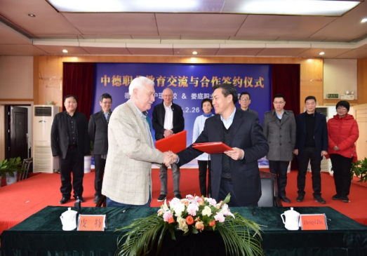 2019年2月26日,我校党委书记李文莲、校长朱忠义亲自接待了由德国联邦劳工局巴伐利亚州慕尼黑市分局、F+U护理学校、博宜人养老集团组成的德国“双元制”职业教育交流考察团,双方就中德友好学校关系建立、人才培养、师资交流、定向培养项目合作等内容进行了友好交流和洽谈,德国F+U护理学校与我校签订了《中德职业教育项目合作协议书》,为我校学子赴德留学(就业)提供了更高的平台和更有力的保障。