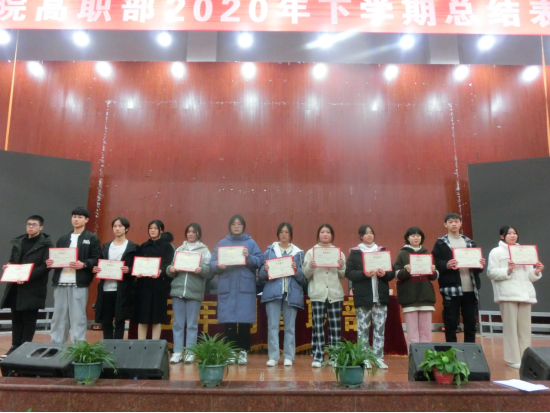 颁奖后,邱正文讲话,回顾了2020年高职部各项教学工作及各类竞赛活动的优秀表现,对全体师生员工同心同德,攻坚克难的团结氛围予以表扬,希望大家明确目标,立志成才;学会感恩,汇报社会;强身健体,适应生活;学法守法,严以律己,在新的一年里不断进步,再创佳绩。