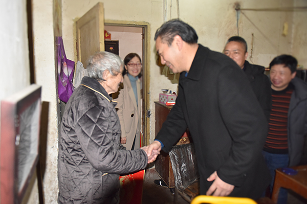 2月3日农历小年前夕,校领导朱忠义、张征澜、王健龙、游新娥、申晓伟、欧芳分组走访慰问了我校离退休市管干部和部分老党员。