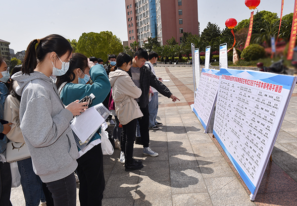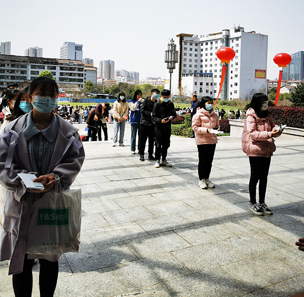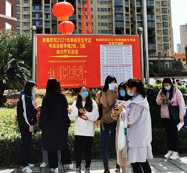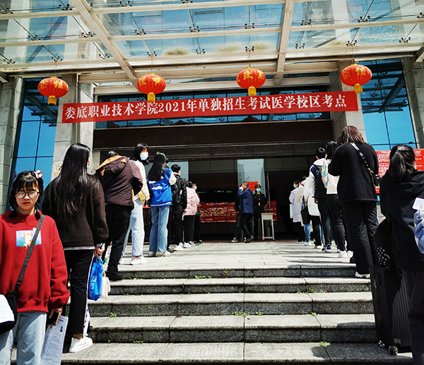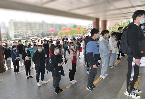 3月22日,我校举行2021年单独招生考试。计划录取3000人,共有8750人前来参加考试。考生们戴着口罩,拿着身份证、亮出手机健康码,间隔一米排队,有序地接受体温检测,排队进入考点楼。学校设立临时隔离点,安排多位值班医生全程守候,做好应急处置准备。此前学校已对校门口及隔离区域进行全面消毒。