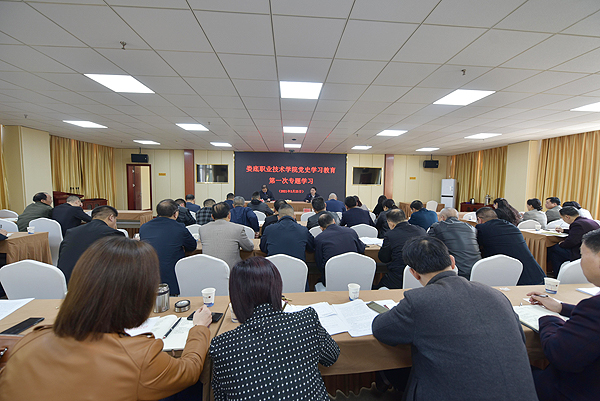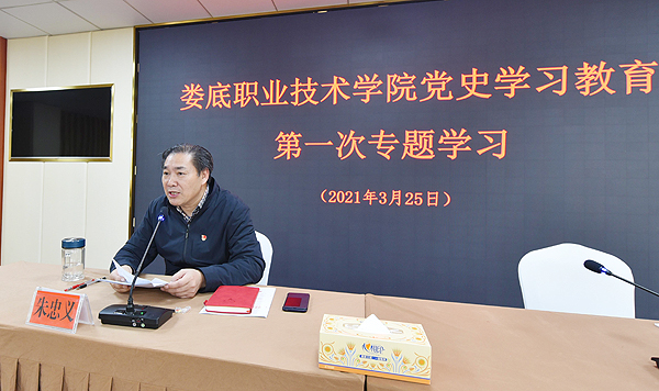 最后,朱忠义强调,要增强“四个意识”,坚定“四个自信”,做到“两个维护”,立足娄职发展,坚持为党育人、为国育才。要准确把握党史学习教育的目标要求和重点内容,高标准高质量推进,学出成效,结出硕果。一是高度重视党史教育学习,将其当成当前最重要的政治任务来抓。二是认真研读党史基本著作,全面了解中国共产党百年奋斗的光辉历程和历史性成就。三是紧跟学校教育教学实际,把党史学习、理论学习,与总结经验、关照现实,推动工作结合起来,把学习的成效转化为工作的动力和实效,更加紧密地团结在以习近平同志为核心的党中央周围,以更加坚定的决心,更加昂扬的姿态开启新征程,奋进新时代,以优异的成绩向建党100周年献礼。