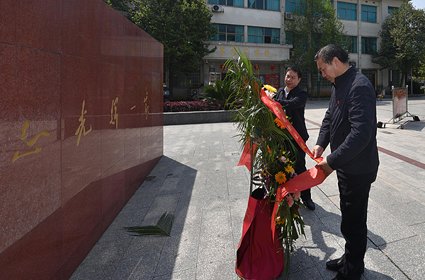 向“蔡和森同志光辉一家”群雕敬献花篮