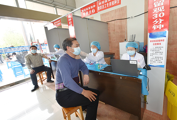 党委书记朱忠义等校领导带头接种了新冠疫苗。