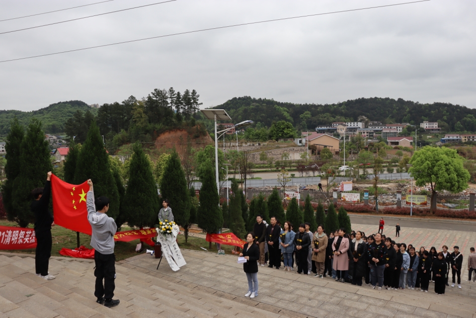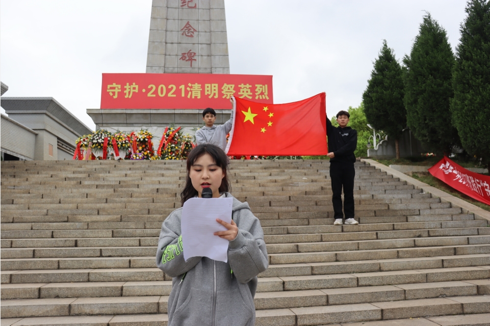 中午12点半,参与活动的老师党员、入党积极分子、干部在国旗下集合完毕后,由王紫珊同学宣读活动流程以及注意事项,同时禹书记出发前也强调了要注意行程安全。100多名师生,伴着飘扬的院旗,徒步10公里,浩浩荡荡的队伍,始终保持着整齐的纵队来到烈士纪念园。稍整队伍后,全体师生庄严面向国旗奏唱国歌,奏唱国歌后,全体师生肃立于纪念碑前,低头哀思,怀着崇敬的心情向革命烈士默哀1分钟并全体三鞠躬,紧接着,由彭梦媛学生代表对此次徒步活动进行演讲,师生们陷入了对烈士的无限缅怀之中。演讲结束后,师生怀着对烈士无比崇敬的心情,神情肃穆地来到纪念馆右侧,瞻仰了烈士纪念碑,开展了祭扫、献花等系列活动。最后,禹书记对本次活动做出总结:“缅怀革命先烈,传承英雄遗志”是作为新时代优秀大学生该有的品质和觉悟。在革命前进的道路上,每个人都应当自强不息、坚忍不拔、努力学习、勇于实践、不断创新,肩负起振兴中华民族的历史使命。活动结束后,全体师生原路返回,活动取得圆满成功。(夏雨晴)