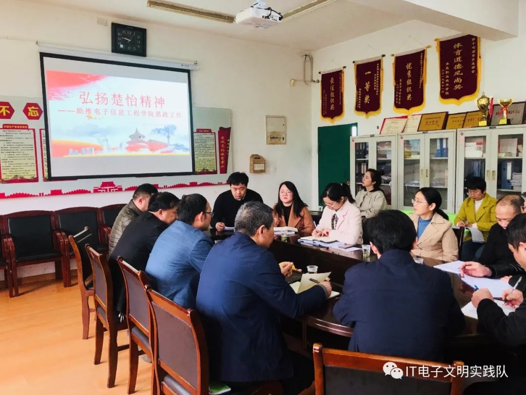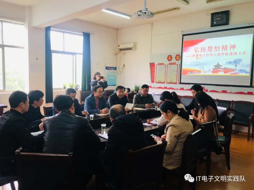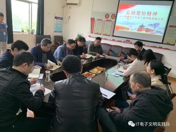 4月16日,电子信息工程学院弘扬楚怡精神助推思政工作研讨会在实训楼301室顺利召开。