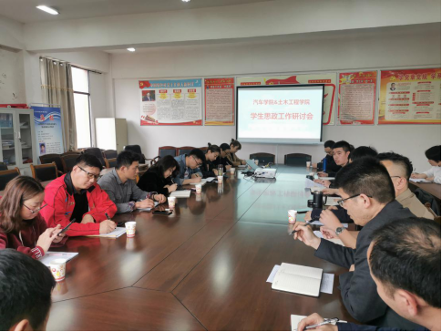 贯彻落实学校2021年第一次思政工作会议精神,推进二级学院学生思政工作高质量高标准开展4月21日下午3点,汽车学院联合土木工程学院围绕“党史学习与楚怡精神如何助推思政工作”主题,在汽车学院二楼会议室召开思政研讨会。副校长欧芳,团委书记兼创新创业学院院长石磊,土木工程学院党总支书记李志强及其学院思政工作骨干队伍,汽车学院班子成员、辅导员和教研室主任参加了研讨会。会议由汽车学院院长聂进主持。