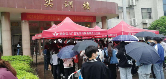 4月24日清晨,娄底职业技术学院实训楼门口,一波接一波的热情似海浪般在人海中汹涌。这是考生们在等待护士执业资格考试开考的场景。来自医学部的领导和老师们用谆谆的嘱托和温馨的祝福为考生们送考,考生们深受鼓舞,信心满满地开赴考场。