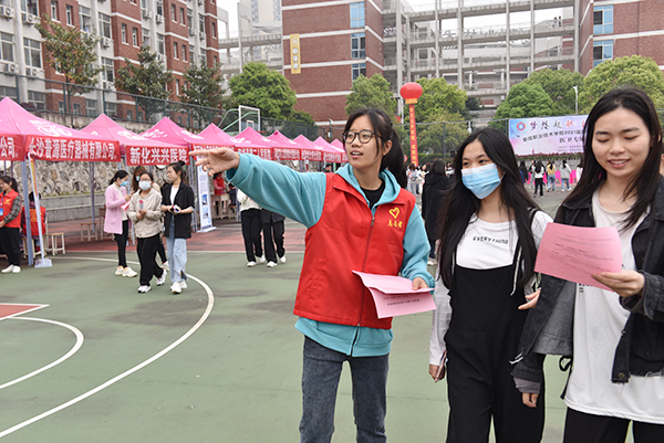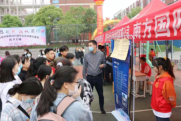 4月29日上午,我校医学部举办医卫专场招聘会,来自北京、上海、广州、深圳、杭州、长沙以及娄底各县市区的60余家医药单位来校,面向2021届毕业生提供护理、药学、检验等就业岗位。出席本次招聘会的领导有娄底市政协常委、文教卫体委员会主任曾佳灿,学校副校长兼医学部主任金建雄,娄底市教育局职成科科长朱孜东,娄底市人社局就业中心主任刘博闻、副主任朱丽芸、就业事务部部长方娇娇,娄底市卫健委科教科科长彭坚胜。医学部常务副主任范国正、党总支书记吴群雄、医学部副主任曹雄辉、张丹,各职能部门工作人员和1400余名医卫类毕业生参加了专场招聘会。