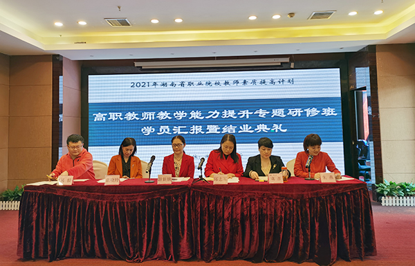 4月29日下午,由湖南省教育厅主办,我校承办的2021年湖南省高职教师教学能力提升专业研修班顺利结业。我校党委委员、副校长游新娥教授、岳阳职院邱志军教授、长沙市教科院袁晓玲教授、长沙商贸旅游职院蒋彦副教授、湖南工业职院葛毅主任、全体培训学员参加了结业典礼,仪式由我校教务处处长朱燕主持。