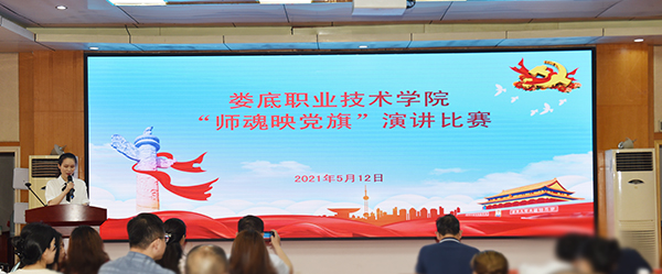 为迎接党的百年华诞,激励广大教职工立德树人,弘扬师德师风,5月12日上午,我校人事处、工会联合举办主题为“师魂映党旗”的演讲比赛,由各部门、二级学院推选的15名教师参加此次比赛。党委副书记、校长张征澜,党委副书记王健龙,党委委员、副校长周志和、申晓伟、欧芳出席,各部门、二级学院老师共180余人现场观摩。