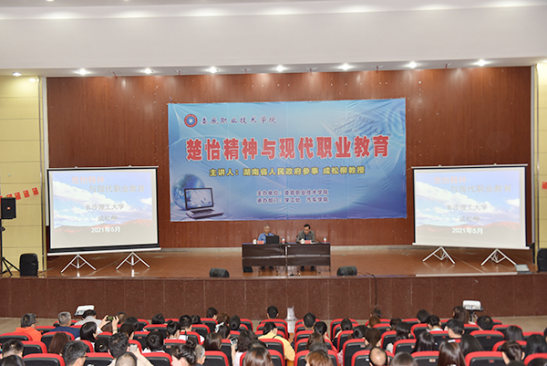 5月19日下午,湖南省人民政府参事、长沙理工大学教授成松柳受邀来我校作“楚怡精神与现代职业教育”讲座,校长张征澜主持,党委副书记王健龙,副校长游新娥、欧芳出席,中层干部及教师、学生代表参加。