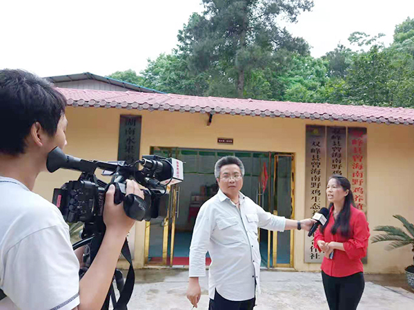 湖南教育电视台还采访了位于双峰县杏子铺镇双源村的湖南水果鸡农业开发有限责任公司。我校动物医院教师团队与湖南水果鸡农业开发有限责任公司签订了三年免费技术指导的合作协议,利用山坡林地探索并实践无抗高产养鸡技术,并以此示范推广,带动当地200余家贫困户无抗养鸡,帮助他们成功脱贫致富,助力农产品提质增效。“工作做的非常实在,有情怀有成效,特别好!”公司负责人告诉记者。