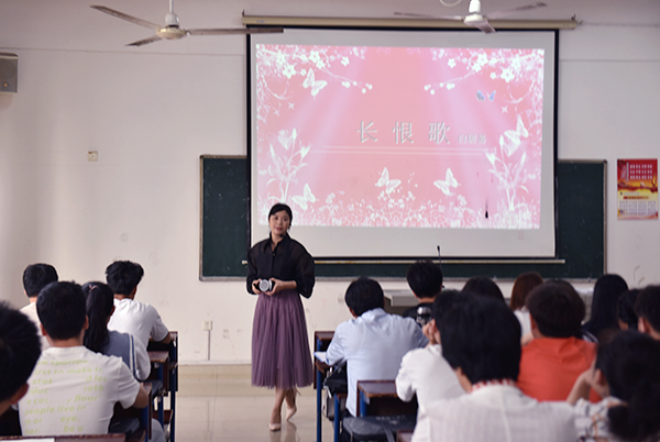 在主教学楼412教室,2020级旅管1班和2020级卓鼎园林设计3班合班课上,公共课教学部教学副主任、邓梦兰老师主讲《长恨歌》。课前小演讲由2名语文课代表主持,演讲内容是学生自定的“我心中的英雄”,按学号顺序每次3名学生上台。学生演讲后,小主持人认真进行了点评。同学们准备充分,或全程脱稿,表达流利;或围绕当前时事热点侃侃而谈,颇有见解;一位同学在演讲中深沉缅怀上周末离世的袁隆平院士,情真意切,说到动情处眼含热泪。