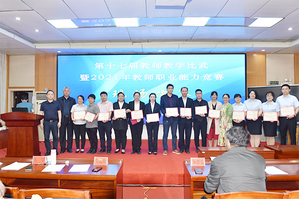 为进一步提高教师职业能力,备战即将到来的省级及国家职业院校教师职业能力竞赛,5月28日,我校在主教学楼多功能报告厅举行第十七届教师教学比武暨2021年教师职业能力竞赛决赛。在预赛和网络评审中脱颖而出的15个团队同场竞技,为现场观众奉献了一场精彩的教学盛宴。校领导朱忠义、张征澜、王健龙、金建雄、游新娥、左学出席,教务处等相关职能部门负责人、各二级学院(教学部)教师代表观摩比赛。