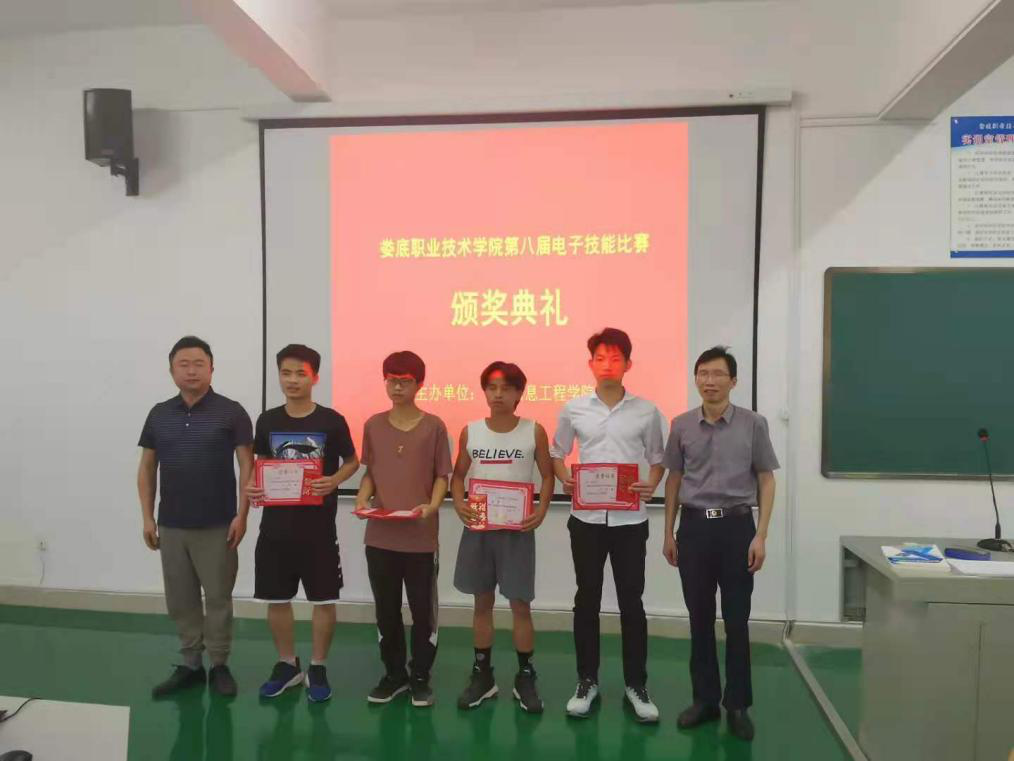 经过激烈的角逐,评委对学生设计的电子产品和电路图纸进行现场评审,评出一年级组一等奖2个、二等奖4个、三等奖6个,评出二年级组一等奖2个、二等奖4个、三等奖6个,赛后与会领导、评委为获奖者颁奖并合影。裁判依据公平公正的原则,参赛人员本着"友谊第一,比赛第二"的原则,整场比赛进行有序。经过激烈的耐力、体力较量,最终,比赛于一个小时候在高潮中落下了帷幕,战况如下:第一轮由大数据四班获得胜利、第二轮由大数据三班获得胜利、第三轮由大数据三班获得胜利,所以最终的获胜者是:大数据3班!最后比赛在大家的欢声笑语中完美结束。