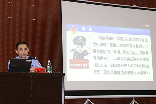 张思维以亲身办案经历,重点对“校园贷”、“刷单”等诈骗手段如何识别和防范,结合校园实际进行了专项讲解,并与学生现场互动答疑解惑。学生们纷纷表示,会将学到的反诈知识灵活运用于生活中,保护自己不受侵害,同时自觉做“反诈骗宣传者”。