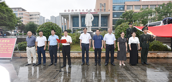 6月30日上午,为庆祝中国共产党成立100周年,在中国共产党早期重要领导人、杰出的共产主义战士、无产阶级革命家、理论家和宣传家蔡和森同志的塑像前,我校举行新党员入党宣誓仪式。全体校领导、各党总支、直属党支部书记、副书记、组织员,党政办、组织部、宣传统战部、纪检监察处、学工部、保卫处、团委等部门负责人,246名2021年上半年发展的新党员参加。虽然天公不作美,但新党员宣誓的热情丝毫未减,在雨中经历了一场难忘的政治“洗礼”。