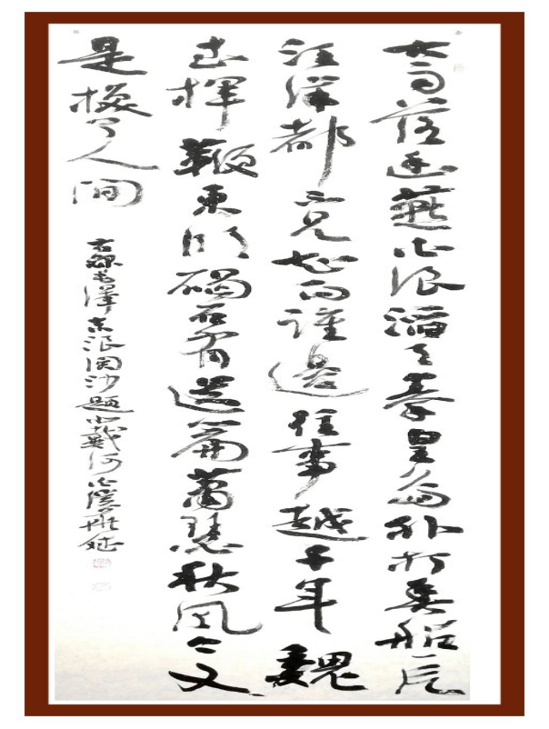释文:南湖星火漫天燃,照亮中华一百年。推倒三山惊世界,实现四化进乐园。青山锦绣美如画,紫塞坚实固若盘。举目征程呈险浪,扬帆万里导航船。