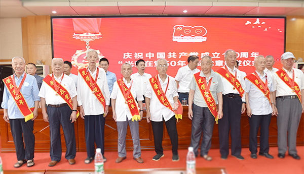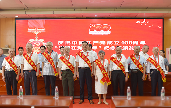 会上,全体校领导还为“光荣在党50年”老党员们颁发了纪念章。“光荣在党50年”纪念章颁发对象是党龄达到50周年、一贯表现良好的党员,我校有31名老党员同志获得了此项荣耀。