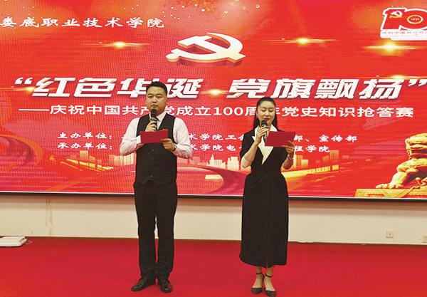 三是举办党史知识竞赛活动。6月24日,由娄底职院工会、组织部、宣传部主办,电子信息工程学院承办的“红色华诞,党旗飘扬”——庆祝中国共产党成立100周年教职工党史知识抢答赛在该校主教学楼报告厅举行,各分工会组成的15支代表队参赛。